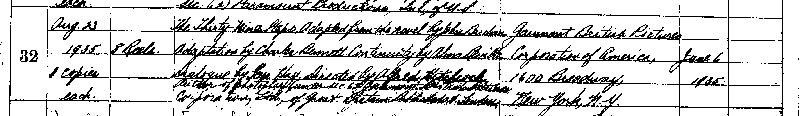 (Side point: take note that the file card indicates that the American registration is for a “Motion-Picture Photoplay Reproduced For Sale”. This indicates that the registration is for a work intended as published as against unpublished, as would be the case for a film exhibited to such a minor extent that its exposure would not constitute publication. The significance of publication status with regards to the necessity to formally register copyright on a work, is dealt with on the illustrations page on publication and some of the citations and court summaries pages which link from it. Those who have not done so should read the summary of Frederick Beck Patterson v. Century Productions, et al.)