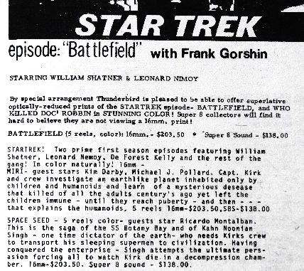 illustration: listing in a Thunderbird catalog for Let That Be Your Last Battlefield and two other Star Trek episodes.