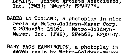 Metro-Goldwyn-Mayer (MGM) had distributed the movie on behalf of independent producer Hal Roach, and had copyrighted the film on Roach’s behalf in that capacity (much as a book publisher registers copyright for authors). MGM’s distribution contract ended a decade later. Ordinarily, Roach would have been responsible for copyright maintenance thereafter, but Roach was bound by an additional contract: to secure the right to use Victor Herbert’s popular 1903 operetta Babes in Toyland as the underlying work for his movie, Roach accepted a timetable by which ownership of the movie would be turned over to heirs of the creators of the operetta. Several leases and sales of various rights to the underlying operetta and the movie followed thereafter.